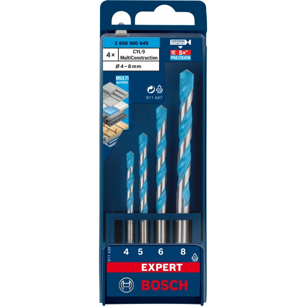 Bosch - EXPERT CYL-9 MultiConstruction - Juego de brocas universales, 4-8 mm, vástago cilíndrico, 4 piezas