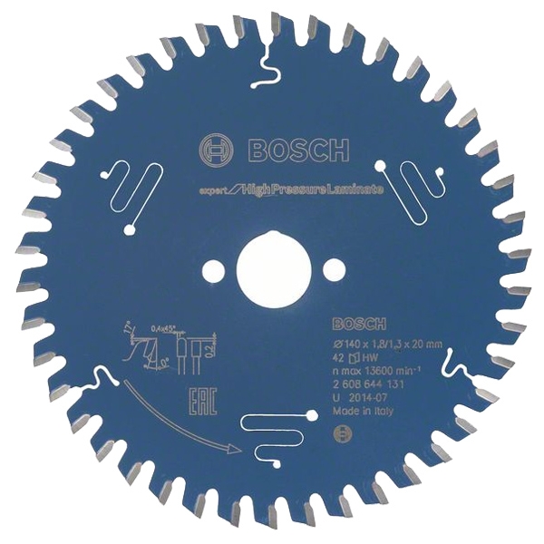 Bosch - Expert for High Pressure Laminate - Hoja de sierra circular,paneles laminados, 140x20x1.8mm, 42 dientes