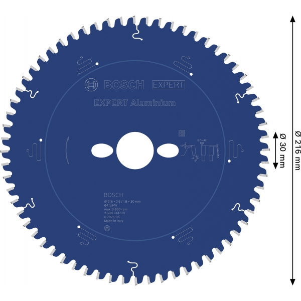 Bosch - Expert for Aluminium - Hoja de sierra circular,aluminio, 216x30x2.6mm, 64 dientes