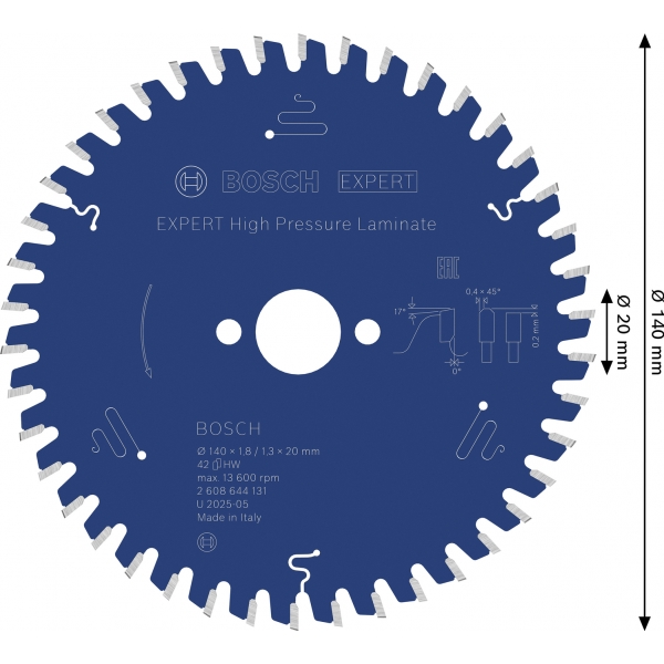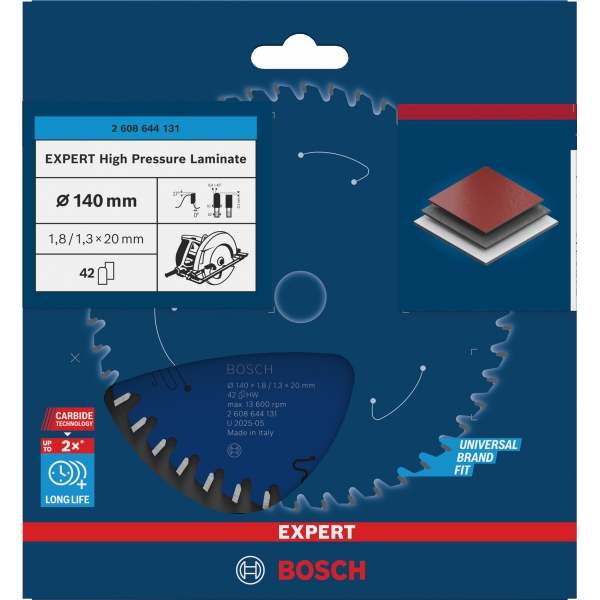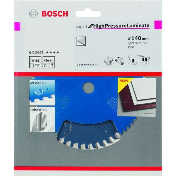 El laminado de alta presión EXPERT cuenta con dientes de carburo finos y afilados, fabricados con tecnología de carburo de Bosch. Esto le confiere durabilidad y permite cortes limpios y precisos. Hemos añadido una capa adicional para evitar la acumulación de calor y protegerlo de la corrosión.