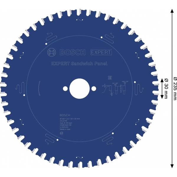 El panel sándwich EXPERT cuenta con dientes de carburo finos y afilados, fabricados con tecnología de carburo de Bosch. Esto le confiere durabilidad y permite cortes limpios y precisos. Hemos añadido una capa adicional para evitar la acumulación de calor y protegerlo de la corrosión.