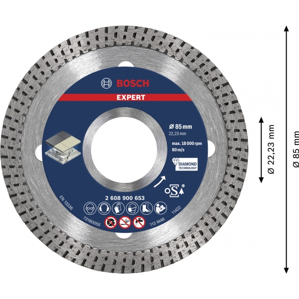 La tecnología Bosch Diamond, que incorpora nuevos diamantes a la superficie para garantizar un filo siempre afilado, permite que nuestro disco de corte cerámico corte incluso los azulejos más resistentes con facilidad. Su cuerpo delgado y resistente, y su filo continuo acanalado, garantizan el máximo control y reducen las vibraciones para obtener cortes de alta calidad y sin astillas.