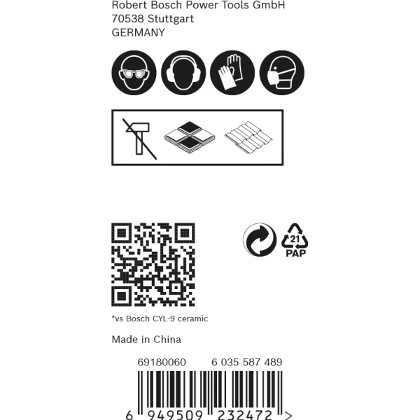 Hasta 10 veces más durabilidad en comparación con la broca de cerámica blanda CYL-9 de Bosch