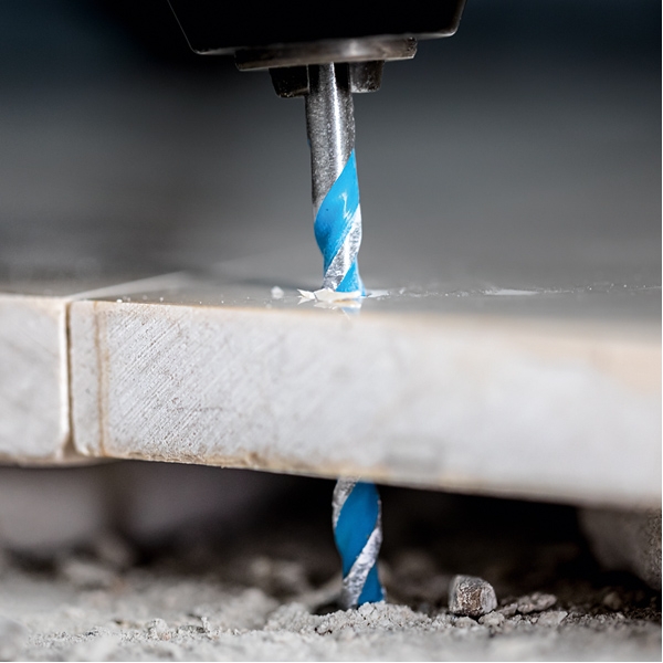Esta broca extremadamente flexible puede perforar con precisión materiales duros como el granito sin resbalar gracias a su punta afilada y su diseño de geometría avanzada.