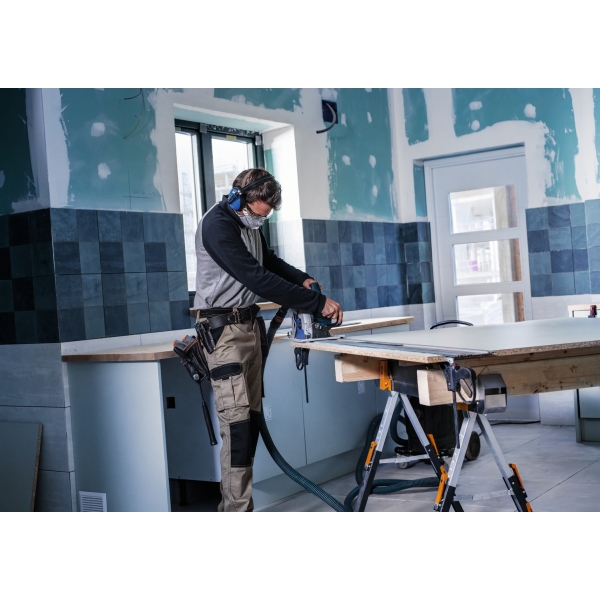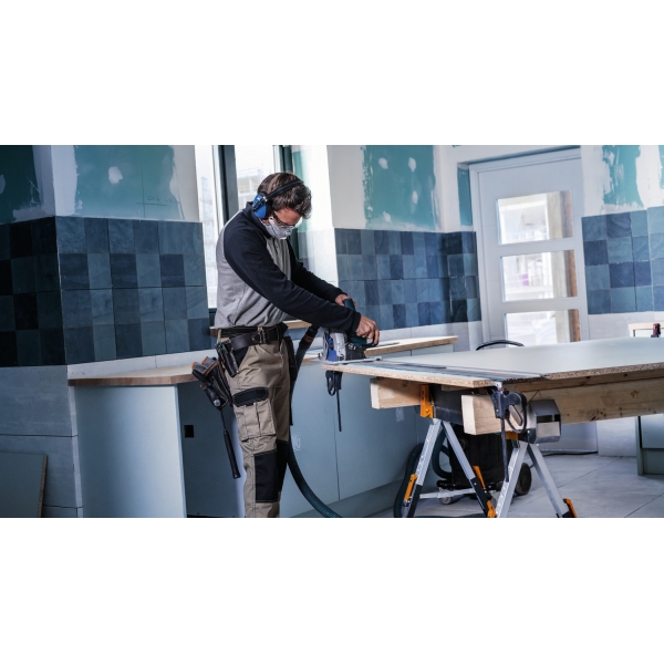 Ideal para cortar paneles laminados, por ejemplo, rodapiés y paneles para armarios y encimeras de cocina.