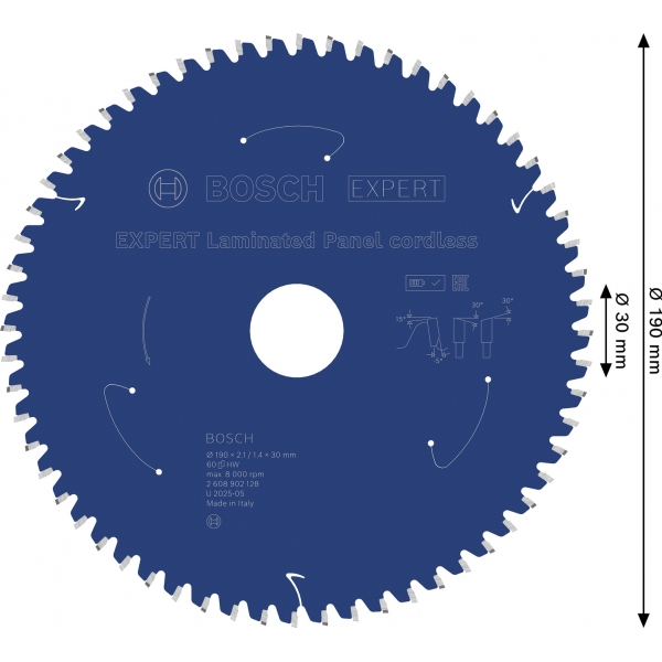 Bosch - EXPERT Laminated Panel cordless - Hoja de sierra circular,paneles laminados, 190x30x2.1mm, 60 dientes