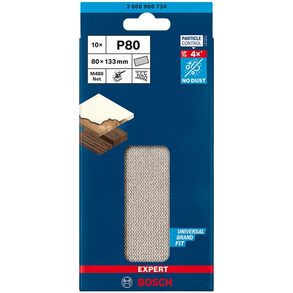 A la vanguardia de este sistema está la malla de lijado Bosch EXPERT M480: las partículas se mueven directamente a través de su malla abierta en lugar de cargar la superficie o contaminar el aire.
