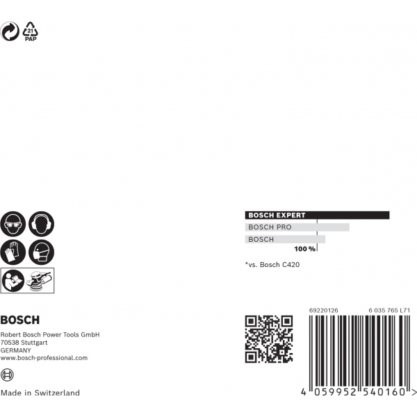 El Control de Partículas de Bosch garantiza que todas las partículas de polvo sean absorbidas por la aspiradora o el filtro. La principal característica de este sistema es la malla de lijado Bosch EXPERT M480: las partículas se mueven directamente a través de su malla abierta en lugar de saturar la superficie o contaminar el aire. Esto también lo hace extremadamente eficiente y duradero.