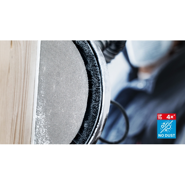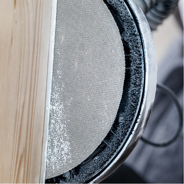 A la vanguardia de este sistema está la malla de lijado Bosch EXPERT M480: las partículas se mueven directamente a través de su malla abierta en lugar de cargar la superficie o contaminar el aire.