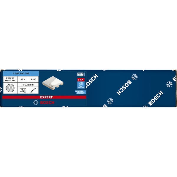 El Control de Partículas de Bosch garantiza que todas las partículas de polvo sean absorbidas por la aspiradora o el filtro. La principal característica de este sistema es la malla de lijado Bosch EXPERT M480: las partículas se mueven directamente a través de su malla abierta en lugar de saturar la superficie o contaminar el aire. Esto también lo hace extremadamente eficiente y duradero.