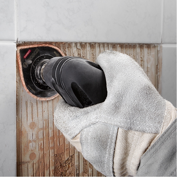 EXPERT 3 max también funciona como placa lijadora para eliminar el mortero viejo de detrás de la placa.