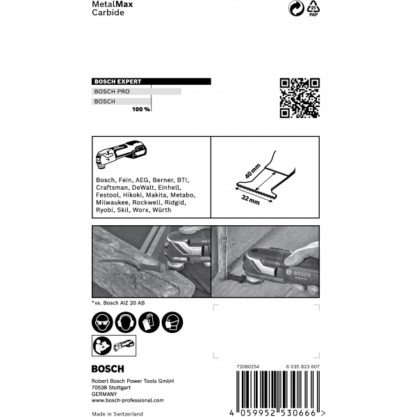 EXPERT MetalMax está a la vanguardia de la tecnología de carburo de Bosch. Sus dientes no solo están hechos de una tira de metal extremadamente dura que puede cortar incluso acero inoxidable, sino que también cuentan con un recubrimiento adicional de alta tecnología para una máxima durabilidad. El filo plano está optimizado para el corte, ya que es menos propenso a resbalar sobre tornillos o tuberías.