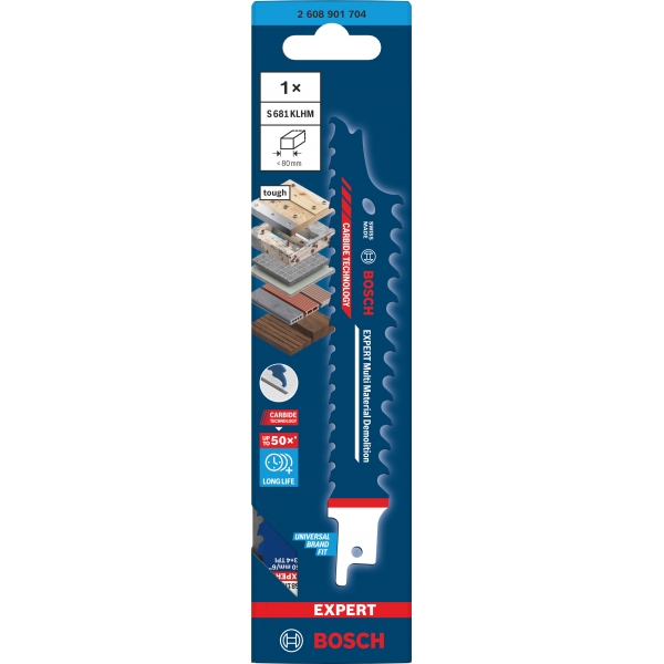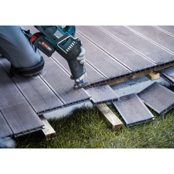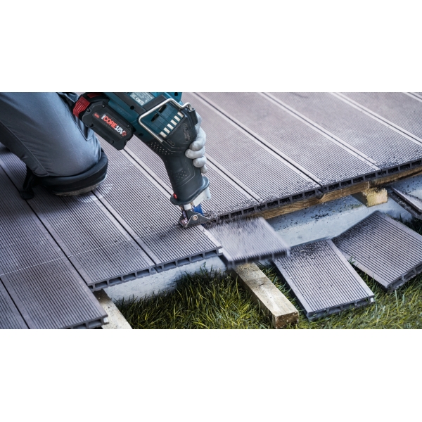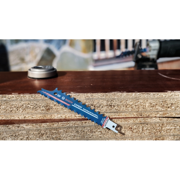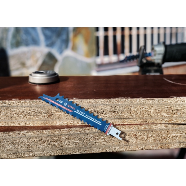 Equipada con tecnología de carburo de Bosch, la Bosch EXPERT Multi Material Demolition S681KLHM corta de forma rápida y fiable materiales duros, como madera compuesta y madera con sujetadores metálicos reforzados.