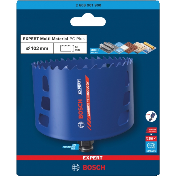Bosch - EXPERT Multi Material Power Change Plus - sierra de corona multimaterial,Fijación rápida, 102x60mm