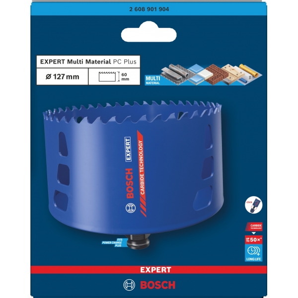 Fabricada con la Tecnología de Carburo de Bosch, cada diente está fabricado con el metal más duro de la más alta calidad, soldado con láser y rectificado seis veces para una forma de corte perfecta. Esto hace que la broca perforadora Bosch EXPERT Multi Material PC Plus sea ideal para trabajos difíciles y para una amplia variedad de aplicaciones: además de madera y metal, es una broca perforadora apta para acero inoxidable, ladrillo, baldosas cerámicas blandas y plásticos reforzados.