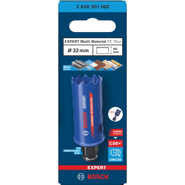 Fabricada con la Tecnología de Carburo de Bosch, cada diente está fabricado con el metal más duro de la más alta calidad, soldado con láser y rectificado seis veces para una forma de corte perfecta. Esto hace que la broca perforadora Bosch EXPERT Multi Material PC Plus sea ideal para trabajos difíciles y para una amplia variedad de aplicaciones: además de madera y metal, es una broca perforadora apta para acero inoxidable, ladrillo, baldosas cerámicas blandas y plásticos reforzados.