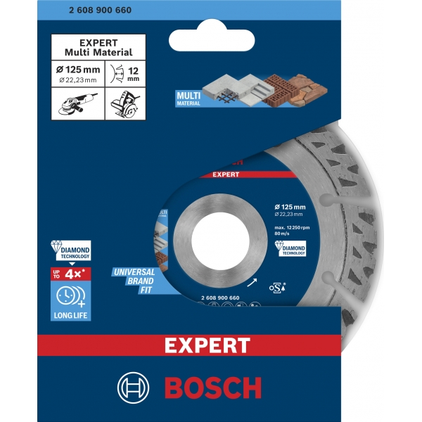 Esta combinación de grano de diamante óptimo y diseño avanzado permite que el disco de corte de diamante Bosch EXPERT Multi Material ofrezca una durabilidad inigualable. Ofrece cortes fiables durante más tiempo que otros discos de diamante Bosch, ofreciendo una excelente relación calidad-precio.