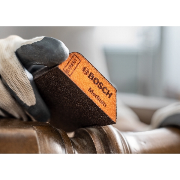 A veces, el lijado manual es insustituible. El problema era que las hojas de lija convencionales se desgastaban, obstruían o rompían rápidamente al lijar curvas y cantos. La solución anterior consistía en comprar muchas hojas de lija, lo que generaba un alto consumo y desperdicio. La nueva solución es la espuma de lijado con Bosch Surface Structure.