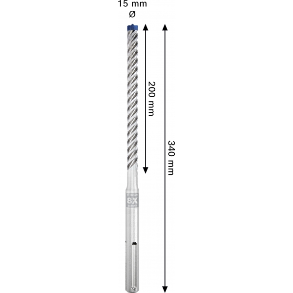 Gracias a la Tecnología de Carburo de Bosch y a un cabezal de carburo completo, la EXPERT SDS max-8X tiene una vida útil más larga que las brocas estándar. Perfora varillas de refuerzo con eficiencia, por lo que no tendrá que detenerse, reajustar ni cambiar la broca mientras perfora acero.