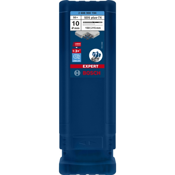 Gracias a la Tecnología de Carburo de Bosch y a un cabezal de carburo completo, la EXPERT SDS plus-7X tiene una vida útil mucho mayor que las brocas convencionales. Perfora varillas de refuerzo con eficiencia, por lo que no tendrá que detenerse, reajustar ni cambiar la broca mientras perfora acero.