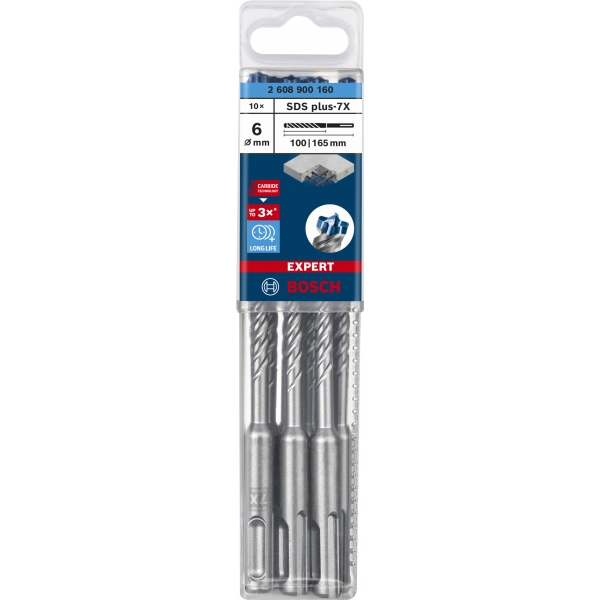 Para los profesionales de la construcción que perforan regularmente hormigón y hormigón armado, por ejemplo, para fijaciones e instalaciones, la broca Bosch EXPERT SDS plus-7X ofrece un rendimiento, una fiabilidad y una durabilidad inigualables. Es el accesorio EXPERT ideal para los martillos perforadores SDS plus.