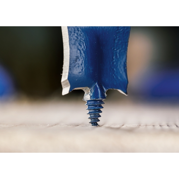 EXPERT Self Cut Speed presenta las soluciones más avanzadas para brocas planas, lo que las hace fáciles de usar y extremadamente prácticas para usuarios profesionales. Su punta roscada introduce la broca plana en la madera con mínima presión, lo cual resulta útil, especialmente al taladrar al revés o en huecos estrechos. El diseño avanzado de la hoja garantiza mayor velocidad.