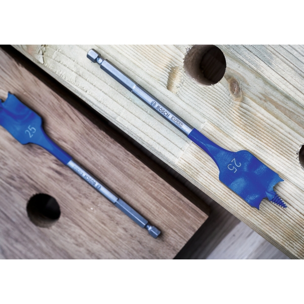 Igualmente fácil de usar en todo tipo de madera blanda, la broca plana Bosch EXPERT Self Cut Speed ofrece eficiencia y comodidad a los usuarios profesionales que necesitan realizar agujeros para cables, tuberías y otro tipo de instalaciones.