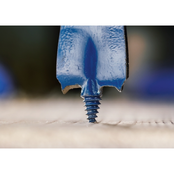 EXPERT Self Cut Speed presenta las soluciones más avanzadas para brocas planas, lo que las hace fáciles de usar y extremadamente prácticas para usuarios profesionales. Su punta roscada introduce la broca plana en la madera con mínima presión, lo cual resulta útil, especialmente al taladrar al revés o en huecos estrechos. El diseño avanzado de la hoja garantiza mayor velocidad.