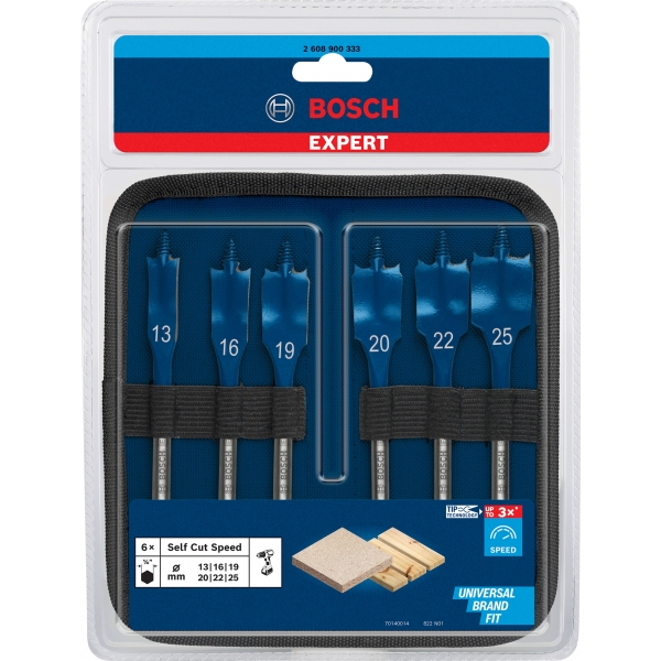 Igualmente fácil de usar en todo tipo de madera blanda, la broca plana Bosch EXPERT Self Cut Speed ofrece eficiencia y comodidad a los usuarios profesionales que necesitan realizar agujeros para cables, tuberías y otro tipo de instalaciones.