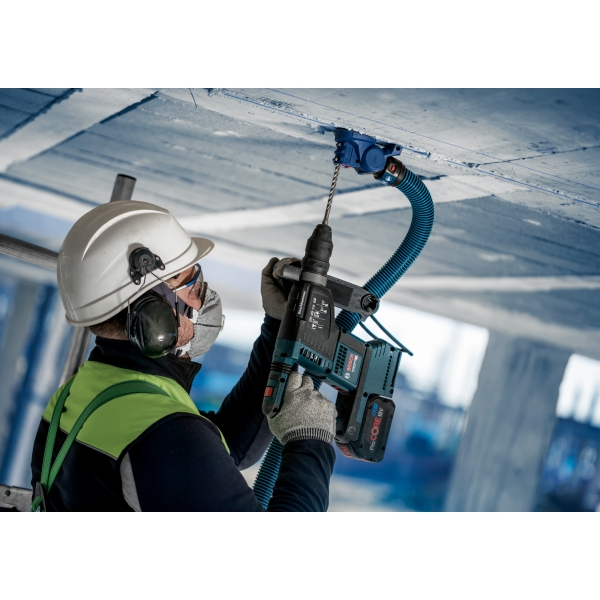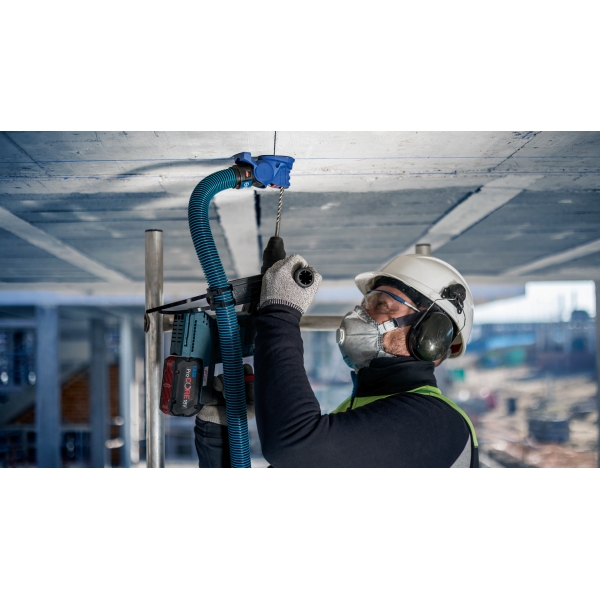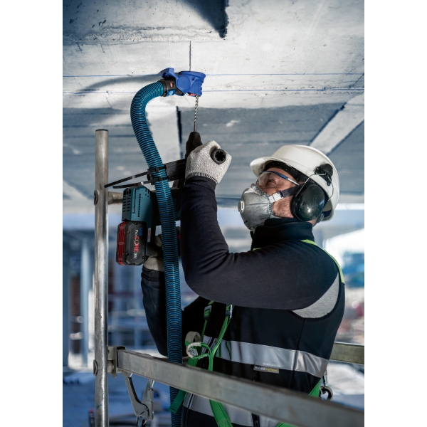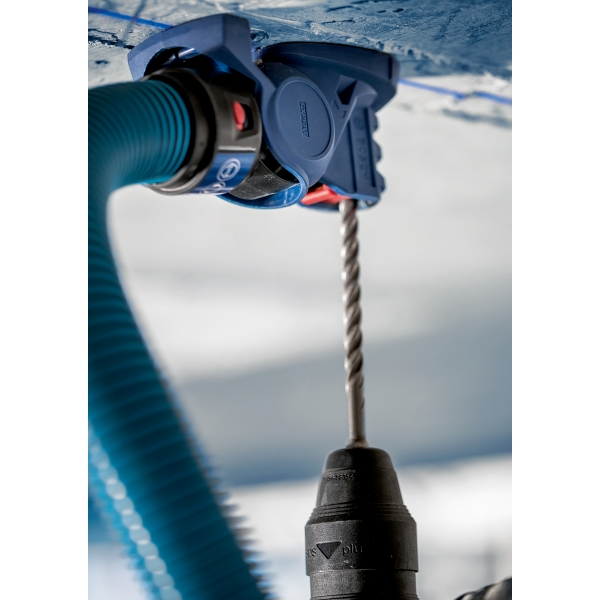 Hemos desarrollado este adaptador de taladro EXPERT SDS Clean para trabajadores de la construcción e instaladores que necesitan perforar agujeros en hormigón. Se instala en cualquier broca SDS plus de 5 a 16 mm de diámetro y aspira el polvo que, de otro modo, quedaría en el aire. También elimina los residuos que, de otro modo, tendría que retirar del suelo. El adaptador es compatible con aspiradoras e incluye un mango para manguera de succión, que se conecta fácilmente a su taladro percutor SDS.