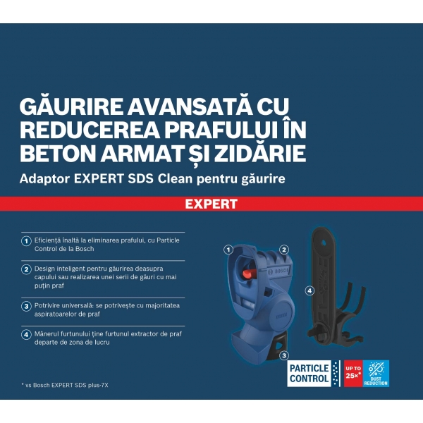 La reducción de polvo es hasta 25 veces mejor que con una broca Bosch EXPERT SDS plus-7X