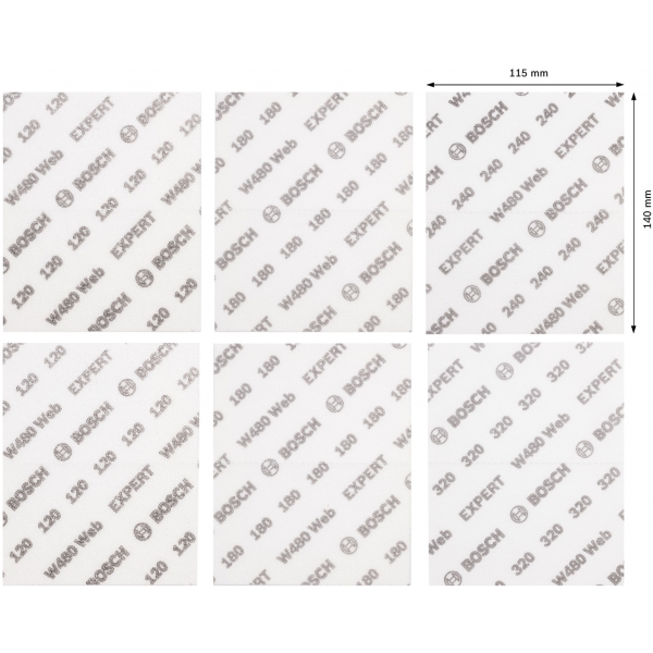 Bosch - EXPERT W480 Web - Hoja abrasiva rectangular, 140x115mm, sin agujeros, 320 granulación, 10 cada