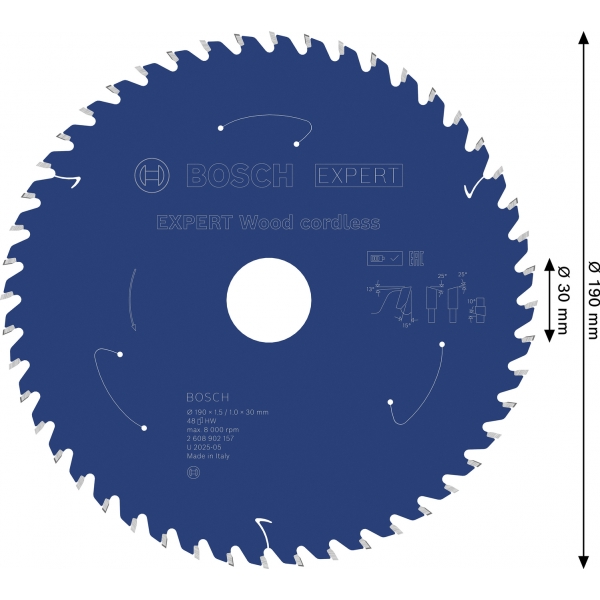 inglésHoja de sierra circular inalámbrica EXPERT Wood, 190 x 1,5/1 x 30 mm, T48