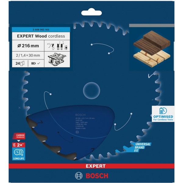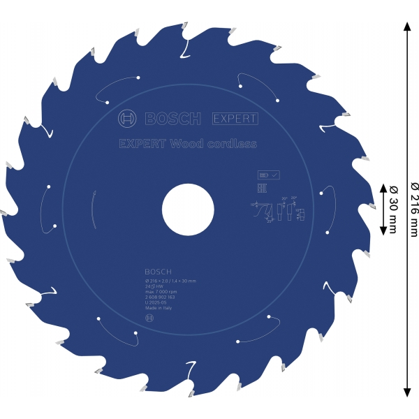 inglésHoja de sierra circular inalámbrica EXPERT Wood, 216 x 2/1,4 x 30 mm, T24