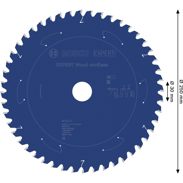 inglésHoja de sierra circular inalámbrica EXPERT Wood, 250 x 2,1/1,6 x 30 mm, T48