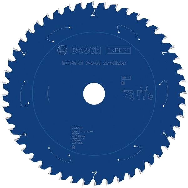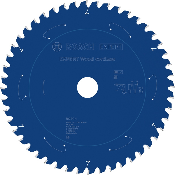 Hoja de sierra circular inalámbrica EXPERT Wood, 250 x 2,1/1,6 x 30 mm, T48