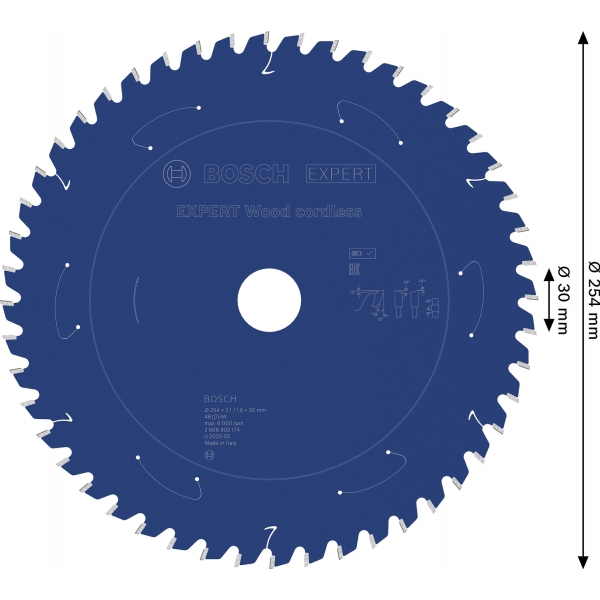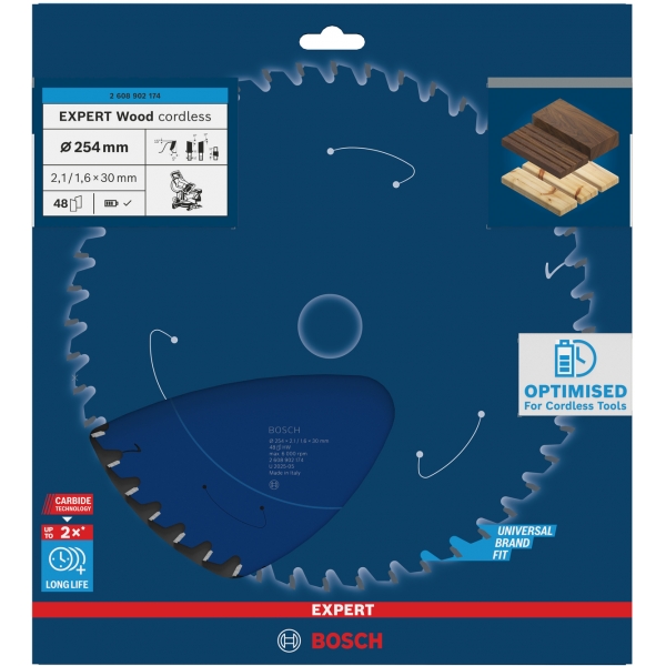 inglésHoja de sierra circular inalámbrica EXPERT Wood, 254 x 2,1/1,6 x 30 mm, T48
