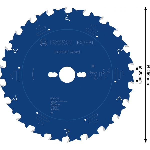 inglésHoja de sierra circular para madera EXPERT, 250 x 3,2/2,2 x 30 mm, T22