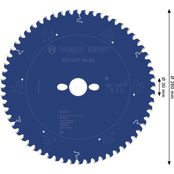 inglésHoja de sierra circular para madera EXPERT, 260 x 2,5/1,8 x 30 mm, T60