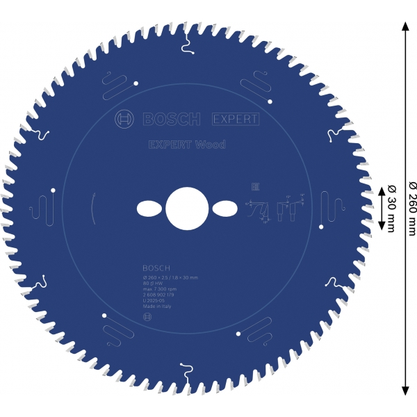 Bosch - EXPERT Wood - Hoja de sierra circular,madera, 260x30x2.5mm, 80 dientes