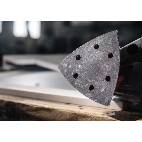 Bosch - 2609256A51 - Juego de hojas abrasivas Delta, 93x93x93mm, granulación 120, 6 noches, 5 piezas