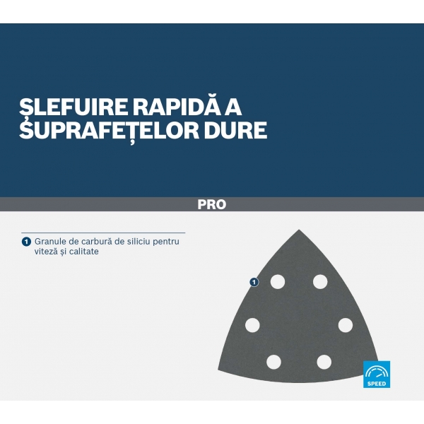 Bosch - 2609256A53 - Juego de hojas abrasivas Delta, 93x93x93mm, granulación 240, 6 noches, 5 piezas