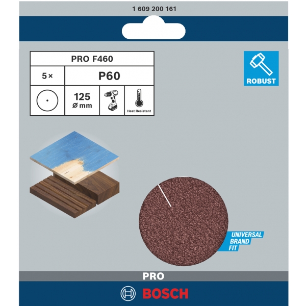 Bosch - PRO F460 - Juego hojas abrasivas redondas, 125 mm, granulación 80, 1 noche, 5 piezas