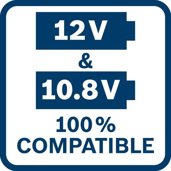 inglésSistema de alimentación flexible de Bosch: compatibilidad 100% para 10.8 V y 12 V.