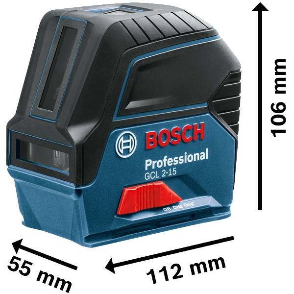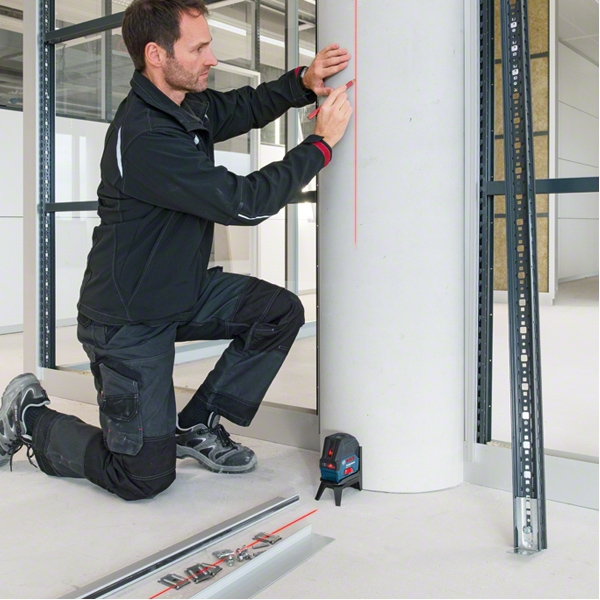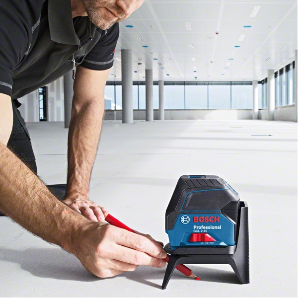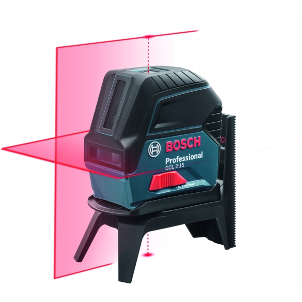 El nivel láser de puntos y líneas GCL 2-15 de Bosch es compacto y versátil para aplicaciones de nivelación de distancias cortas El dispositivo de bloqueo del péndulo permite un transporte seguro.