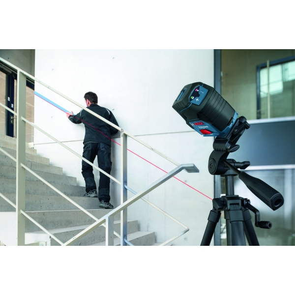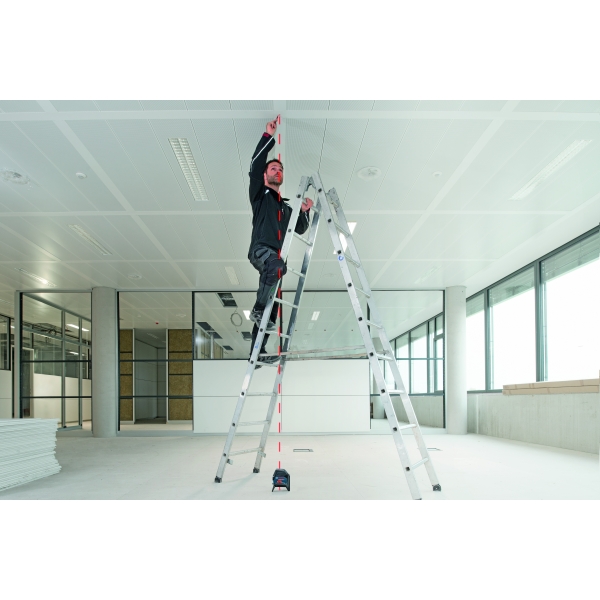 Líneas láser horizontales y verticales, así como dos puntos verticales centrados, con una visibilidad óptima.