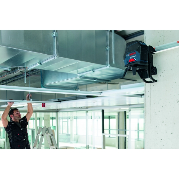 Uso flexible con el soporte multifuncional giratorio RM 1 Professional, para alinear las líneas láser y con posibilidades de fijación versátiles.