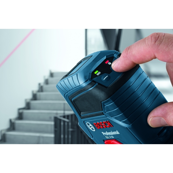 Gracias a la presencia de un solo interruptor y dos botones prácticos, este nivel láser de línea compacto garantiza un uso intuitivo y un excelente manejo durante los trabajos de nivelación.
