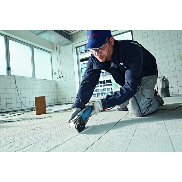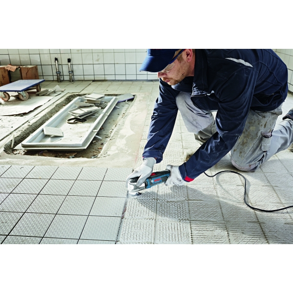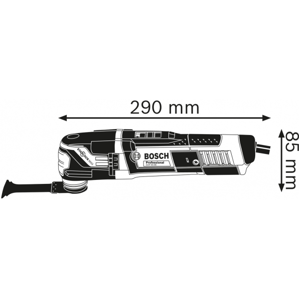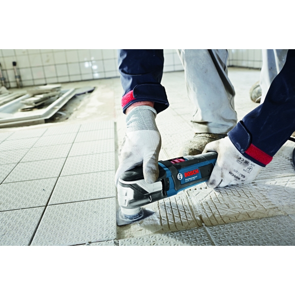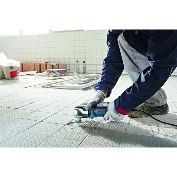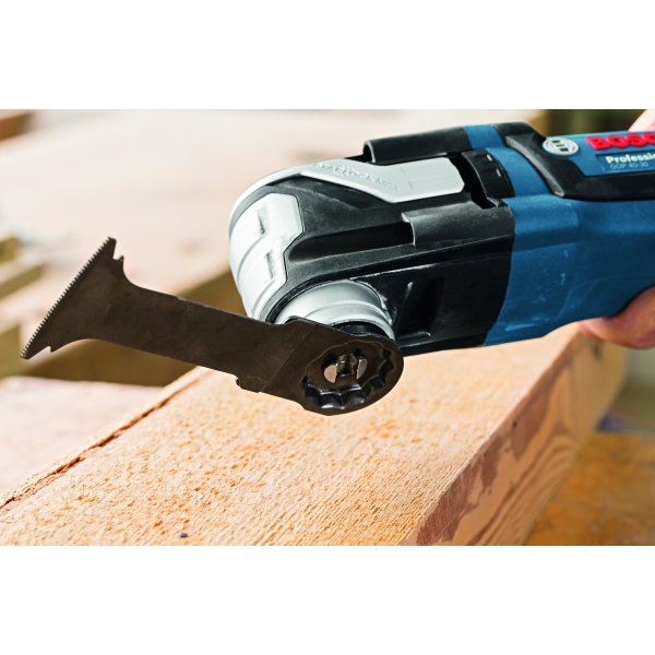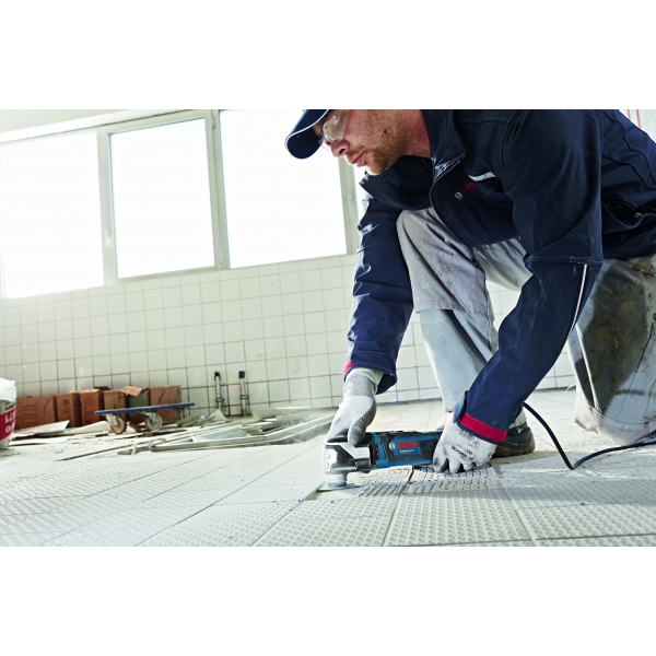 inglésLa máquina multifuncional Bosch GOP 55-36 tiene un sistema SDS para el cambio rápido y sin llave de accesorios con un uso muy cómodo.