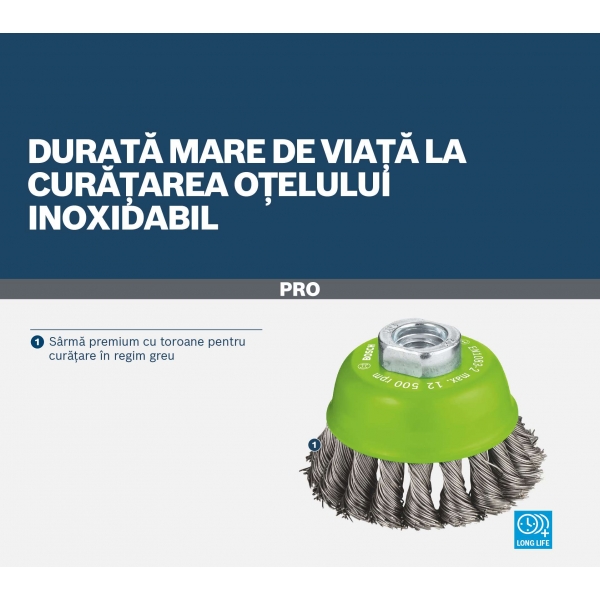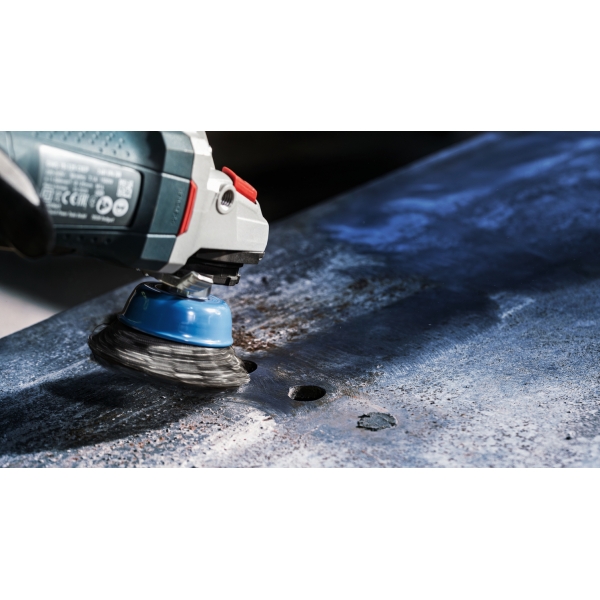 ¿Trabajas en metal y necesitas limpiar acero inoxidable y metales no ferrosos? El cepillo para ollas PRO de acero inoxidable es un accesorio robusto. Funciona rápido y deja las superficies limpias y ásperas en todo momento.